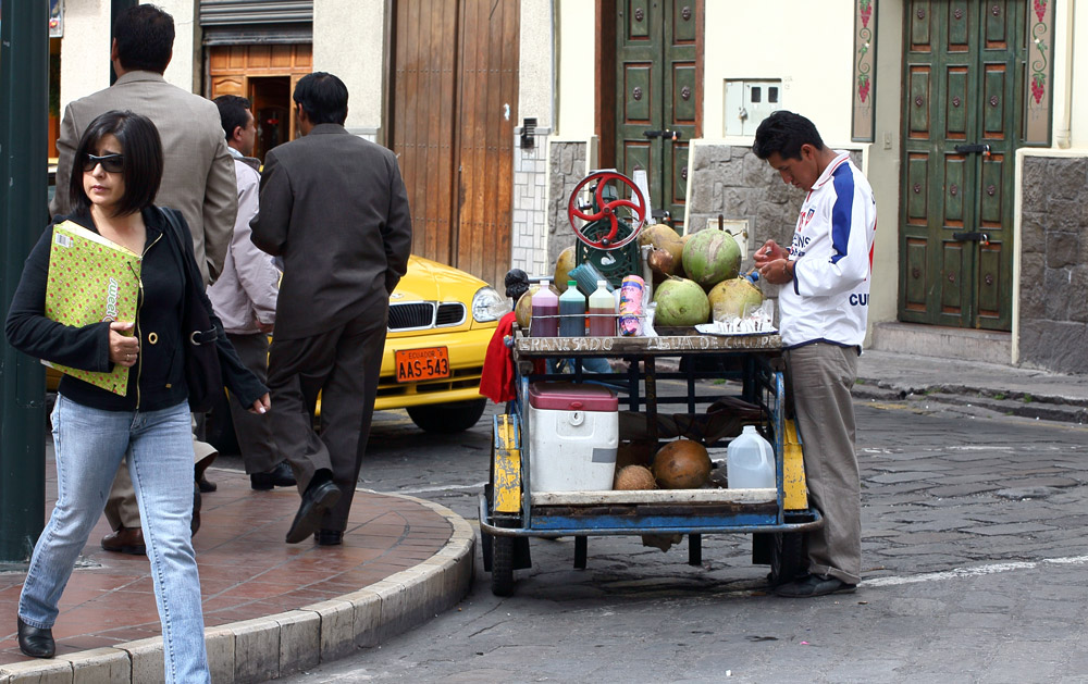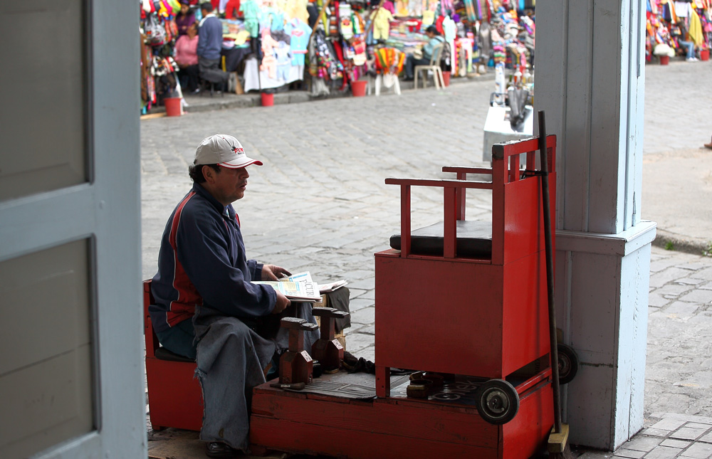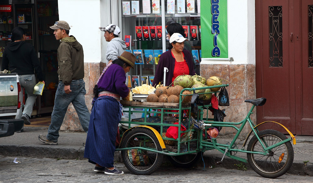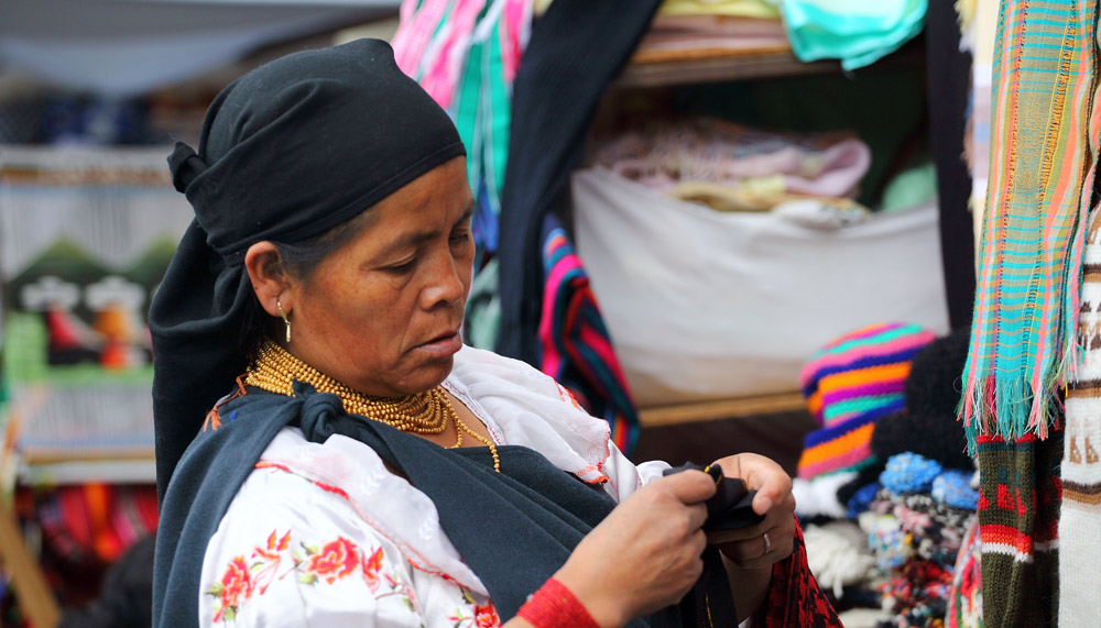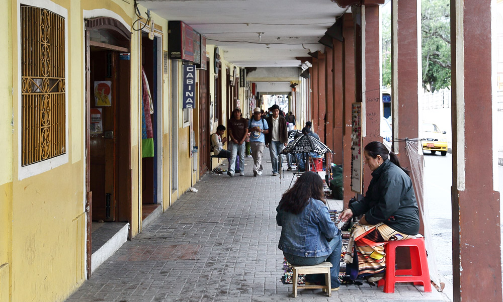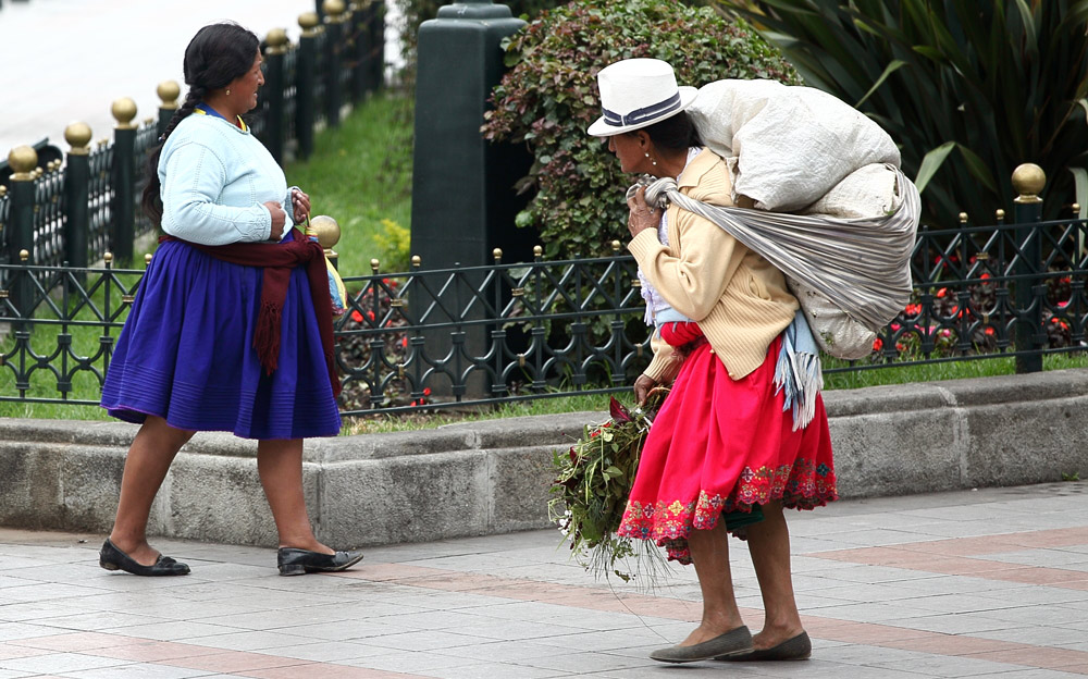 En arrière de la nouvelle cathédrale se tient un marché aux fleurs lumineux, coloré, odoriférant. Derrière leurs étals, affairées, assises sur de petits tabourets, les Cholas cuencanas en costume traditionnel vendent une variété infinie de fleurs parfumées.