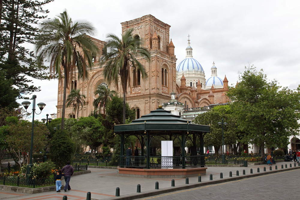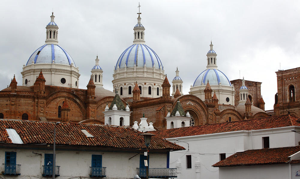 La nouvelle cathédrale Immaculée Conception, dont la construction débuta vers 1880, conçue par un religieux allemand du nom de John Sthiele, est considérée comme l'une des plus belles d'Amérique du Sud. Ses trois coupoles démesurées et bleues le soir au soleil couchant s'illuminent et offrent alors au regard un spectacle irréel. Mais une erreur de conception empécha la pose des cloches dans le clocher car trop lourdes pour la structure. Dans le choeur un magnifique dais à quatre colonnes se dresse au-dessus du maître-autel. L'ensemble est de bois sculté recouvert de feuilles d'or. Le sol est de marbre de Carrare. Les jolis vitraux, soit d'origine européenne soit créés et fabriqués à Cuenca, laissent pénétrer et diffuser une douce lumière dans l'ensemble de la cathédrale.