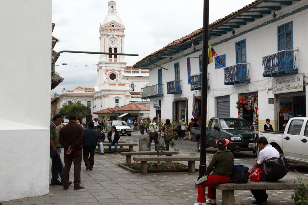 Cuenca à 440 km au sud de Quito est la troisième ville du pays avec ses 350 000 habitants. Capitale de la province de Azuay elle s'étend dans la vallée de Paucarbamba à 2500 mètres d'altitude. Son vrai nom est Santa Anna de los Cuatro Rios de Cuenca car elle est entourée de trois fleuves (Tarqui, Machangara, Yanuncay) et traversée par un quatrième le Tomebamba. Cette riche vallée fut occupée autrefois par les Incas après qu'ils eurent soumis la farouche population locale des amérindiens Can᷉aris qui leur résistèrent vaillament.