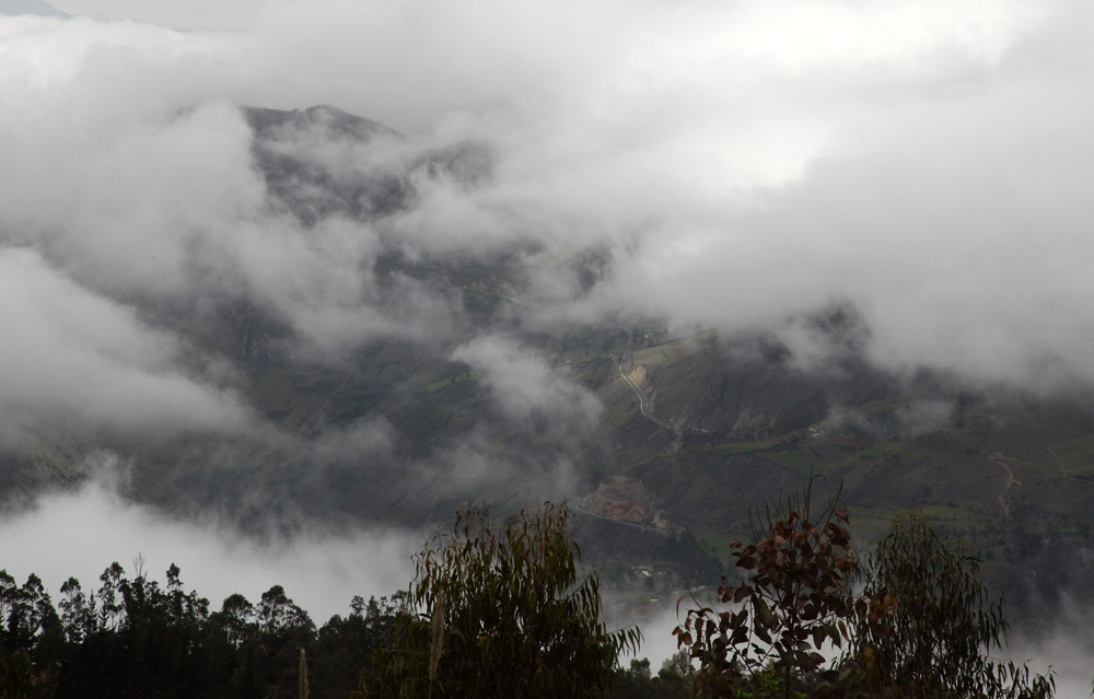 La route de Loja emprunte les cols de hauts sommets montagneux et culmine à plus de 2000m. Enveloppée de nuages elle suit, sinueuse, les vallées et les cols. La visibilité souvent réduite par le brouillard incite au volant à la plus grande des prudences. L'automobiliste, le chauffeur de bus ou de poids lourds équatorien a une idée très particulière de la conduite : excés de vitesse, dépassement sans visibilité, priorité fantaisiste, etc.