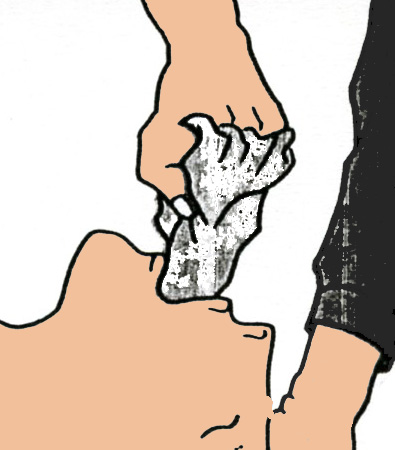 - La bouche de l’opérateur s’applique sur le nez de la victime.