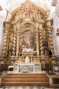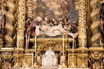 Le superbe retable baroque du maître autel de Pedro Roldan présente en son centre une superbe mise au tombeau sculptée, les visages des personnages sont empreints d'une émotion admirablement rendue par l'artiste
