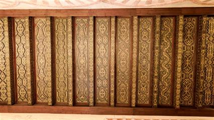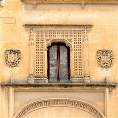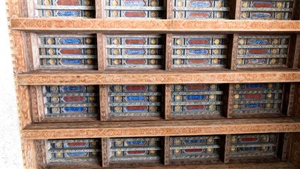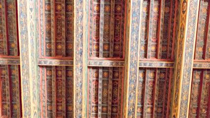 A l'étage les galeries du patio conservent des restes de fresques du XVIème siècle, les plafonds aux remarquables peintures.