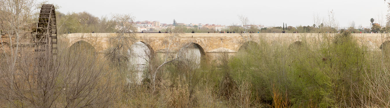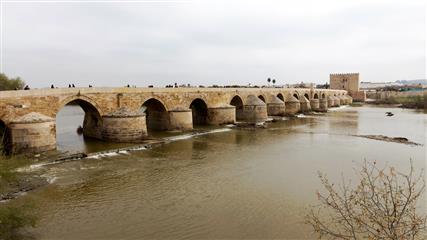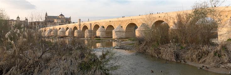 Au début du 1er siècle avant JC, à l'époque de domination romaine, un pont est construit pour rejoindre les rives du Guadalquivir, remplaçant probablement un pont plus ancien en bois, il a une portée de 331 mètres et se compose de 16 arcs, bien qu’il y en eut 17 à l’origine. Il constituait le moyen d’accès principal à la ville depuis la zone sud de la péninsule ibérique. C'était le seul pont permettant de traverser le Guadalquivir sans utiliser d’embarcation. La Via Augusta, qui allait de Rome à Cadix, empruntait probablement le pont. La tour défensive de la Calahorra et celle de la Porte du Pont (Puerta del Puente) qui se trouve à l’autre extrémité sont deux constructions qui datent de l’époque musulmane. La porte actuelle fut réalisée par l’architecte Hernan Ruiz II en 1572. Au centre du pont se trouve une sculpture de San Rafael réalisée en 1651 par le sculpteur Gomez del Rio.