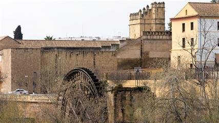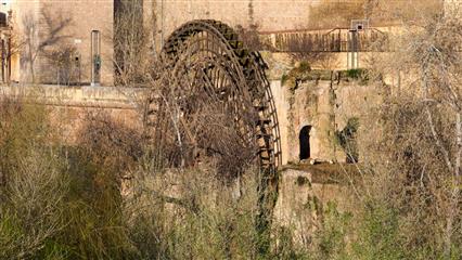 En aval du pont, des norias, machines hydrauliquesqui alimentaient en eau la ville les palais et les jardins, sont encore présentes et sont à l'origine des moulins à eau qui furent une avancée technique d'importance en particulier pour la production d'huile d'olive.