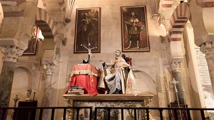 Sur l'emplacement d'une église de la période wisighotique (des vestiges archéologiques sont visibles à l'intérieur de la cathédrale à travers un plancher de verre) une mosquée est érigée entre le VIIIème et Xème siècle. Après la reconquête elle est consacrée comme église et au XVIème siècle une cathédrale gothique est incluse dans la mosquée, les deux architectures s'interpénétrant pour réaliser un édifice unique au monde.