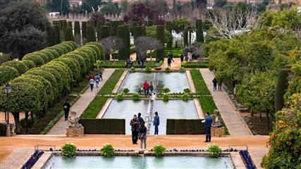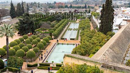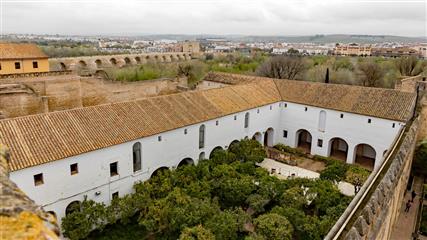 L'Alcazar des rois chrétiens forteresse. Des vestiges romains et wisigoths cohabitent avec ceux d’origine arabe. A sa réddition en 1236 au roi Ferdinand III, l'ancien palais califal avait été détruit. Alphonse X décida de reconstruire une nouvelle forteresse sur le même site mais c'est le roi Alphonse XI qui mena à bien l'ensemble des travaux. Forteresse aux longs murs de pierre taillée reliés par quatre tours d'angle rectangulaires. Les appartements se distribuent autour de patios fleuris, agrémentés de bassins et fontaines. Les bains, d’inspiration arabe, divisés en trois salles voûtées aux lucarnes en forme d’étoile diffusant une faible lumière et procurant à ce lieu une ambiance intimiste. Dans ce château eut lieu l'audience, alors qu'il préparait son projet de nouvelle route vers les Indes, entre Christophe Colomb et les rois Catholiques. Le Saint Office de l'Inquisition y eut son siège jusqu'en 1821 avant d'être finalement converti en prison avant d'être ouvert au public.