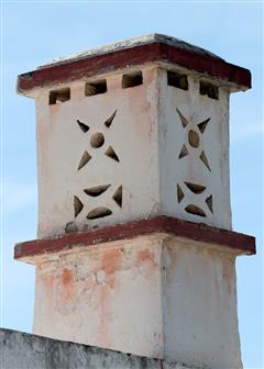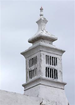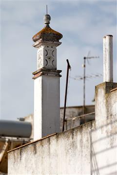 En Algarve l'ornementation des maisons semble se concentrer sur l'aspect des cheminées, différentes d'une maison à l'autre, parfois simples parfois exubérantes. En forme de cylindres , rectangulaires ou de minarets, allongées ou trapues, ajourées d'une dentelle de pierre, peintes ou simplement blanches, parfois surmontées d'une girouette.