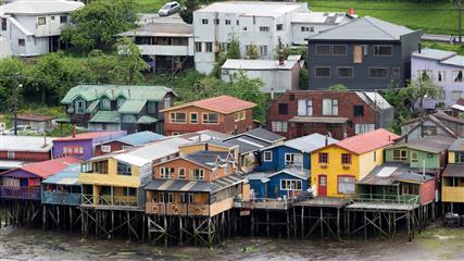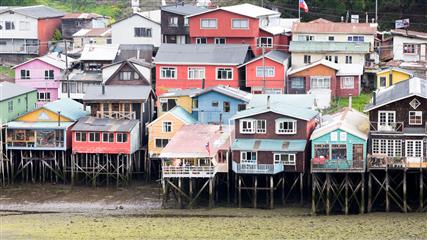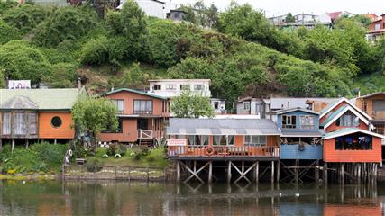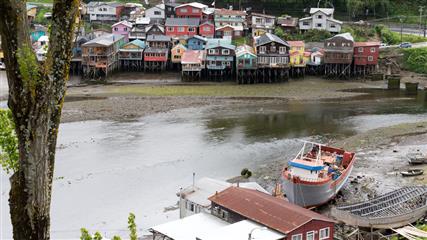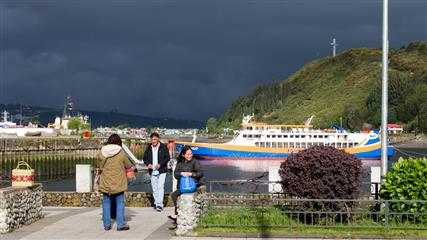 Première étape sur la route australe : traversée de l'île de Chiloé, escale à Castro la capitale avant de prendre le bac à Quellon pour débarquer à Chaitén sur le continent.