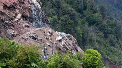 16 novembre :Le ferry est à l'heure, l'embarquement rapide et en bon ordre . Dès le départ le vent commence à souffler et la pluie se met à tomber sans discontinuer jusqu'à l'arrivée à Chaitén 5 heures plus tard. Le débarquement se fait sous la pluie et bientôt nous repartons sur la route sans s'arrêter dans cette ville rasée par une éruption du volcan Chaitén. Une halte est prévue au retour dans cette petite ville qui reprend peu à peu vie après avoir était noyée par des lahars sous 1 mètre de boue.