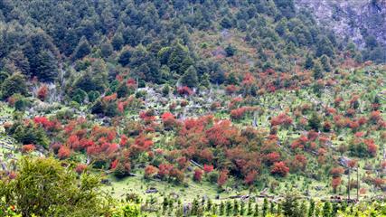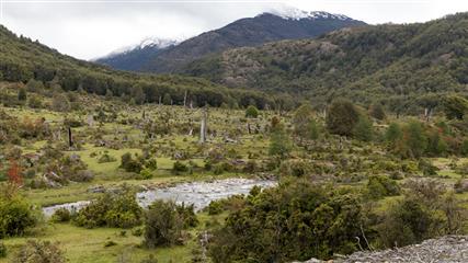 17 novembre : Après une nuit paisible et une petite virée en ville à la recherche de la station service et du supermarché nous roulons à nouveau sur la Carretera vers Cochrane. Nous longeons la rive ouest du Lago General Carrera, immense lac (le premier du Chili par sa superficie qui est trois fois celle du lac Léman) à la couleur tantôt émeraude tantôt bleu profond, entouré de montagnes toujours aussi hautes avec leurs sommets enneigés et de nombreux glaciers. Un paysage majestueux. Malheureusement de nombreuses forêts sont détruites par des incendies volontaires afin de libérer des patûrages pour l'élevage de bovins. Un triste spectacle que de voir ces centaines de troncs d'arbres brûlés, gris, dénudés, sans vie, s'ériger vers les nuages.