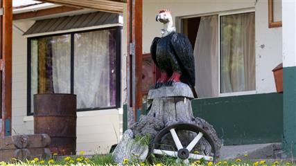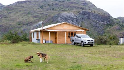 Après 335 km parcourus sur la Carretera devenue maintenant une piste pas très confortable aux descentes vertigineuses et aux épingles à cheveux raides, Cochrane se précise dans le lointain. Seulement 3 000 habitants mais c'est la dernière vraie "ville" avant la fin de la route. Ravitaillement en carburant et victuailles indispensables. Ici est à priori la dernière station service. Nous allons trouver un logement d'un grand confort et une hôtesse charmante Marie Agnès. Certainement une des meilleures étapes pour passer la nuit et dans un cadre magnifique mais nous voilà bien sud déjà et il fait frisquet. Le poêle va ronfler toute la nuit et entretenir une douce chaleur dans le chalet. Dans la nuit il faudra que l'un d'entre nous se lève et quitte la douce chaleur du lit pour aller alimenter le poêle.