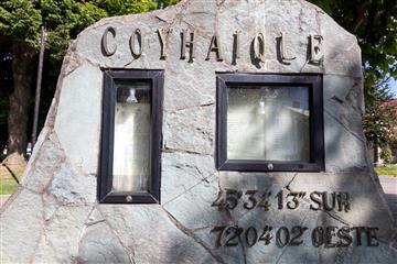 A 19 heures nous pénétrons dans Coyhaique, un gros bourg de 50 000 habitants, implantée sur un haut plateau boisé entouré de crêtes dentelées. De la place centrale pentagonale, peuplée d'arbres immenses, rayonnent des rues vivantes et commerçantes, disposition tout à fait en opposition à la structure habituelle quadrangulaire des villes chiliennes. L'arrivée de la Carretera Austral en 1980 a désenclavé la ville au point d'avoir supplanté Puerto Aysén comme capitale régionale. La ville n'a rien d'extraodinaire si ce n'est se promener et respirer un air pur. Elle est devenue le lieu où les pêcheurs à la mouche se donnent rendez-vous et où les voyageurs en partance vers les fjords avoisinants ou le sud viennent s'approvisionner.
