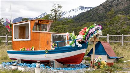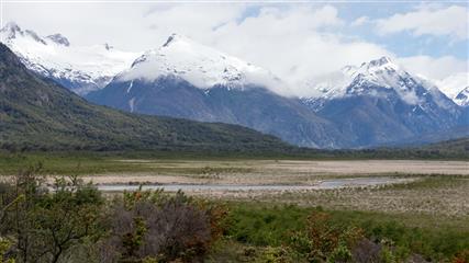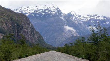 19 novembre : Le jour de la dernière étape pour arriver à Villa O'Higgins. La ville de la fin de la route australe, une petite bourgade d'environ 500 habitants dont l'isolement a pris fin par l'arrivée de cette route mythique en 1999. Pour arriver à destination la route, toujours aussi incertaine, se déploie au milieu d'une nature grandiose et préservée. Ici très peu d'habitants, quelques très rares maisons ou fermes isolées croisées au détour d'une clairière, d'un virage. Une nature entière et grandiose, des montagnes aux cimes enneigées, des lacs et des rivières, des torrents tumultueux, du brouillard et de la pluie, parfois quelques rayons de soleil émergent de la nébulosité et illuminent ce paysage monumental.