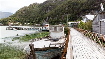 L'étape du jour est précédée de quelques arrêts en particulier à Villa Ortega oubliée des guides touristiques, un village dans son écrin de verdure entouré de hautes montagnes, perdu dans le début de la Patagonie. Arrivée à Coyhaique en soirée après avoir emprunté une route au décor sauvage, route parfois interrompue, certain secteur ne sont toujours pas achevés, le relais est alors assuré gratuitement par de petits ferries. Cette partie de route goudronnée est très agréable, ne présente pas trop de dangers. La circulation est peu dense, car cette région compte moins de 1 habitant au km²,