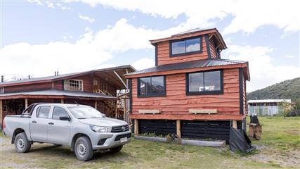 Le tourisme en est encore à ces balbutiements car Villa O'Higgins est vraiment au bout du monde. Quelques maisons d'hôtes et pensions de familles, des cabanas reçoivent essentiellement des "routards" de toutes nationalités. Mais aussi quelques hôtels modestes ont fait leur apparition ces dernières années. Nous trouvons à nous loger sans difficulté dans un ancien château d'eau rénové en petit appartement impeccable avec une vue imprenable sur l'environnement.