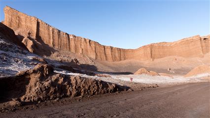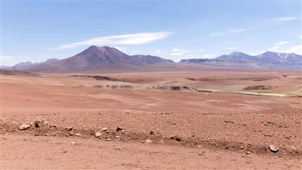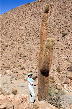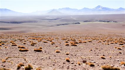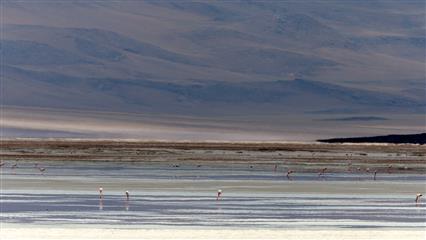 17 décembre : Le dernier épisode du séjour est un retour sur les terres les plus arides de la planète : les 100 000 km² du désert d'Atacama. Le souvenir que nous en gardons est impérissable. Une steppe rocheuse dont l'horizon est la seule limite, une terre craquelée par une chaleur torride de tous les jours, de hautes plaines entourées de sommets enneigés, de lagunes aux couleurs minérales. Les salars, recouverts de flamands roses, exsudent du sel sous divers aspects : concrétion, flaques cristallines. On est frappé par le silence qui règne sur ces hauts plateaux. Les nuits y sont claires et tranparentes, idéal pour scruter la magnificience de la voûte céleste (ce n'est pas un hasard si nombre de téléscopes ont été construits ici).