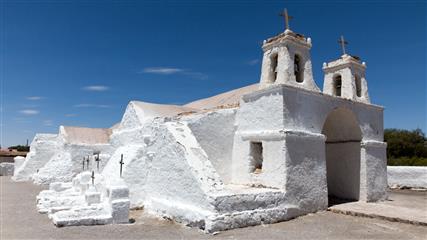 - Chiu-Chiu. Une très belle église, une des plus anciennes du Chili et qui date de la fondation du village en 1611 sur une étape "del Camino del Inca". L'église à l'architecture coloniale, aux murs blanchis à la chaux, des portes et portail faits en bois de cactus