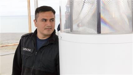 Après une bonne nuit de sommeil bercé par le bruit du vent qui souffle en rafales toute la nuit nous grimpons dans la voiture et longeons le détroit de Magellan sur une piste relativement carrossable jusqu'à la pointe Dungenes entrée du détroit sur la facade atlantique. A la pointe un phare érigé en 1892 assure la sécurité des bateaux et des marins qui empruntent le détroit pour atterrir et passer dans l'Océan Pacifique et ainsi éviter le Cap Horn et ses tempêtes légendaires. Le gardien du phare nous aperçoit et nous propose spontanément de visiter la bâtisse ainsi qu'un petit musée aménagé à la base de la tour. Les phares au Chili sont sous la direction de l'Armada Chilienne et les gardiens sont des militaires. Du sommet de la lanterne l'entrée du détroit se déploie sous nos yeux. 15 neuds de vent, une mer plate, une excellente visibilité sur tout l'horizon. C'est l'été.