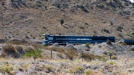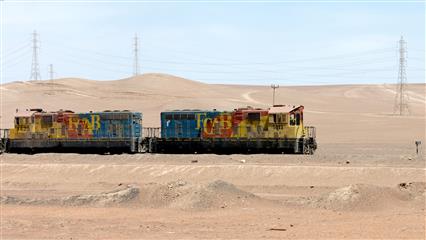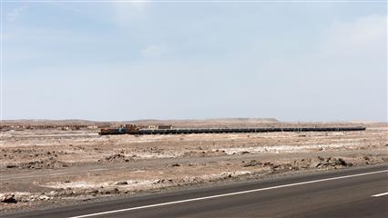 La ligne de chemin de fer est parcourue par d'immenses convois de tranports de marchandises en particulier minier.