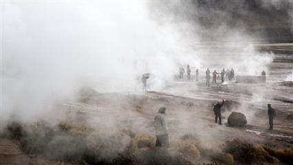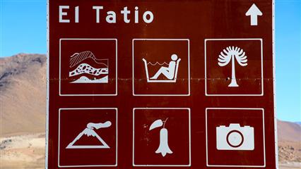 - Les Geysers du Tatio à 4320 m d'altitude. Partir à la nuit de San Pedro pour arriver à l'aube et ainsi profiter du spectacle offert par les geysers qui s'activent, se réveillent à ce moment-là. Attention à la température -5°C à -10°C à l'aube, s'équiper de vêtements chauds.
