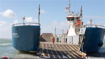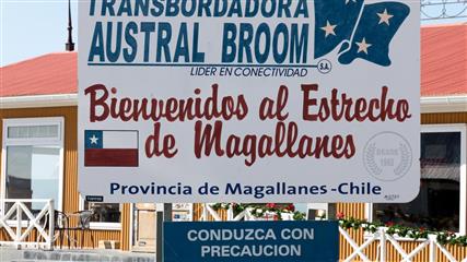 Pour rejoindre la Terre de Feu un ferry nous fait franchir un bras de mer : le détroit de Magellan. Le vent est déchaîné, les vagues viennent frapper violemment la muraille du ferry et arrosent tout le bateau d'embruns froids. Difficile de rester accoudé au bastinguage dans ces conditions venteuses et frigorifiantes. Heureusement la traversée est de courte durée.