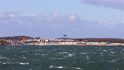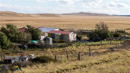 10 décembre : Début de la remontée vers le nord sur une route qui serpente dans la pampa. Passage de la frontière à San Sebastian. Nous quittons l'île de la Terre de Feu en retraversant le Détroit de Magellan. Arrivée à Punta Delgada un tout petit bourg perdu aux confins de la pampa. Quelques maisons un petit hôtel charmant avec comme chambres des Agleco aménagés. Le restaurant de l'hôtel propose un repas à choix unique et un bon petit déjeuner. Ce petit restaurant ne doit pas voir souvent des étrangers. La clientèle locale habituelle semble étonnée de voir quelques "estranjeros" atablés dans la salle de leur restaurant.