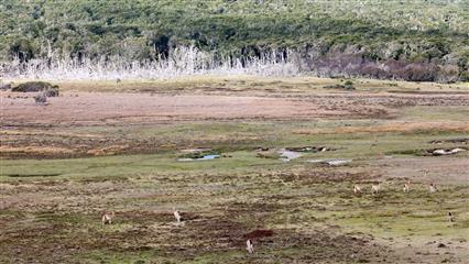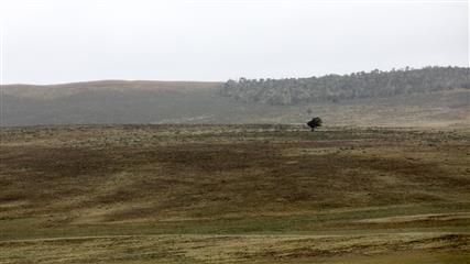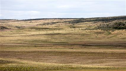 6 décembre : En route pour la Terre de Feu une île grande comme l'Irlande quasi désertique à part les moutons qui paissent librement sur de grandes étendues de steppe. C'est un tout autre paysage que celui des hauts sommets enneigés de la cordillère des Andes, une steppe à l'infini qui court vers l'horizon balayée continuellement par le vent. La nature est encore sauvage, assez bien préservée malgré l'élevage intensif des moutons.