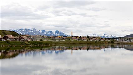 La route est encore longue jusqu'à Ushuaia, aussi nous nous arrêtons à Tolhuin, une petite ville où il n'y a rien à voir. Située en bordure d'un lac (le lac Fagnano), entourée de monts enneigés, le paysage a changé, les grandes plaines sont remplacées progressivement par les sommets enneigés de la Cordillère des Andes. Cette petite cité calme est très touristique. Le soir nous irons faire le tour du lac et pourrons ainsi apprécier la richesse de la faune locale en particulier les oiseaux sur le lac.