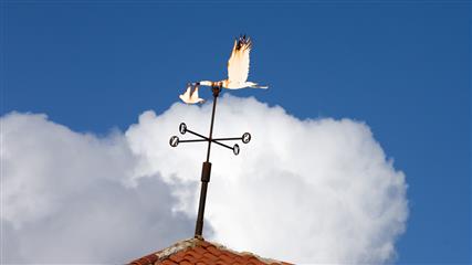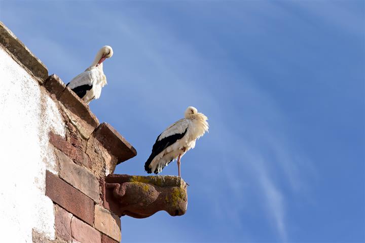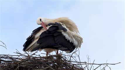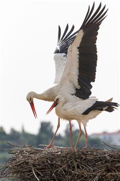 La Cigogne blanche (Ciconia ciconia) oiseau échassier de la famille des Ciconiidé. Plumage blanc, extrémité des ailes noires, pattes rouges orangées, long bec droit et rouge. Une envergure moyenne de 155 à 180 cm. Oiseau migrateur par excellence. Elle passe l'hiver en Afrique subsaharienne.