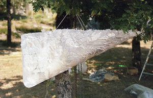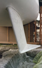 Fabriquer une forme en bois. A partir de cette forme réaliser un moule en plâtre. Fondre 300 kg de plomb provenant de vieux tuyaux ou caractères d’imprimerie réformés et les couler dans le moule en plâtre puis démouler. Recommencer l’opération pour la seconde ailette. Mettre le tout en place. Stratification : les ailettes sont rapportées aux voiles de quilles (voiles de quilles infusés dans le même temps que la peau intérieure et la peau extérieure, les quilles sont en monolithique) par voie humide classique avec mise sous vide jusqu'à polymérisation de la résine.