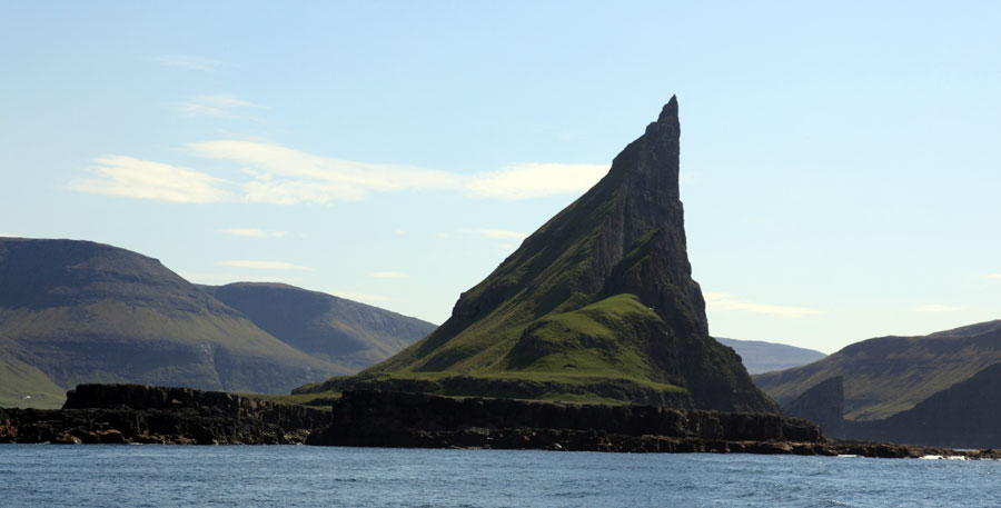 Il est probable que des moines y vivaient en ermite au milieu du septième siècle, et qu'ils furent chassés par les vikings qui arrivèrent aux Féroé vers l'an 800, s'y installèrent, faisant des Féroé un site de peuplement important le long des côtes nord atlantique et de la mer d'Irlande.
