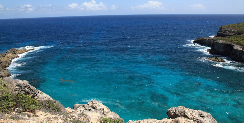 Marie-Galante île en forme de grande galette, de formation calcaire avec des falaises au nord.
