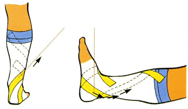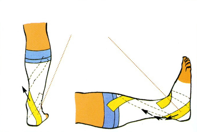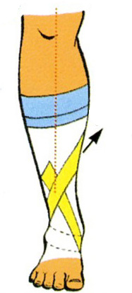 Un étrier fait d'une bande élastique de 4 cm de large à laface externe de la jambe