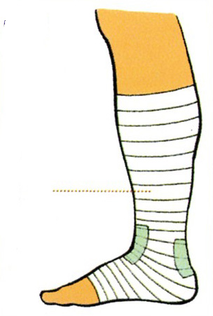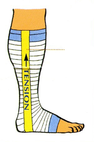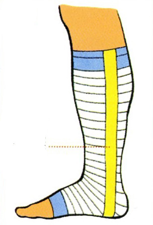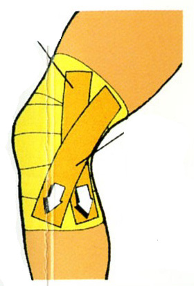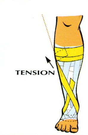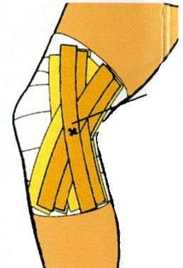 Vérouillage postéro interne avec une bande élastique de 4 cm de large. Respecter le sens de tension