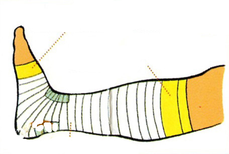 En cas d'entorse il est nécessaire d'immobiliser l'articulation qui souffre. Cela se fait en utilisant de la bande de contention élastique (la plus connue reste l'Elastoplaste) et en suivant la mise en place décrite ci-dessous pour les principales articulations. La consultation médicale reste indispensable dès que vous le pourrez.