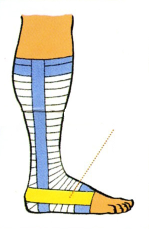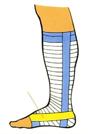 Pose d'un étrier horizontal fait d'une bande élastique de 4 cm à la face interne.