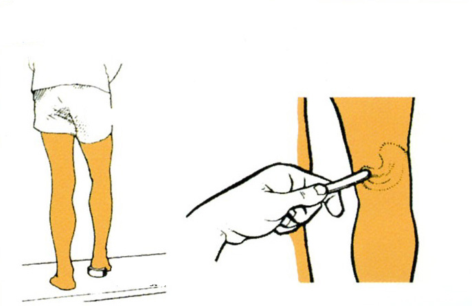 Disposer sous le talon un rouleau de tissu de 4 cm épaisseur de façon à ce que le genou soit légèrement fléchi.