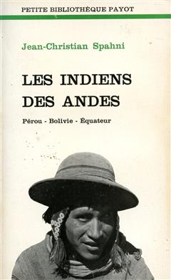 Jean-Christain Spahni : les indiens des Andes (Pérou-Bolivie-Equateur). Une synthèse sur ce que sont ces communautés indiennes de la cordillère des Andes. A travers cet ouvrage une approche d'une civilisation originale, respectueuse de l'homme et de la nature.