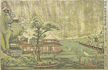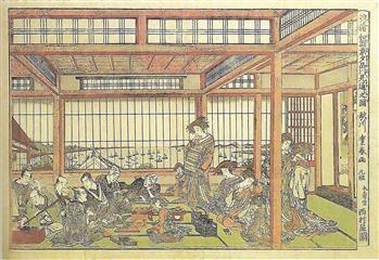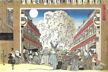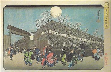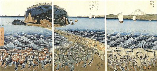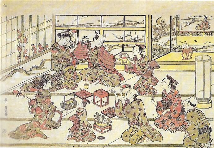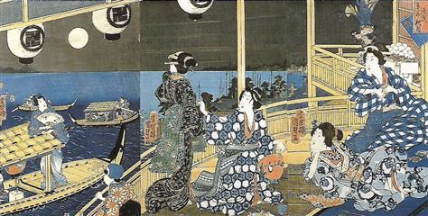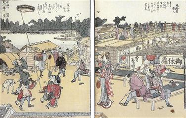 La vie à l'époque de Edo était difficile. Face à la dureté de la vie et à la fragilité de l'existence, confrontées aux fléaux récurrents qu'étaient les famines, les incendies et les maladies, toutes les classes sociales avaient développé un sens aigu de la fête. Jeux, danses, promenades étaient fréquents, un échappatoire à l'incertitude de son destin. Les gens n'allaient pas bien loin en général, promenade à la rivière voisine, chasse aux lucioles, balade en barque. Les routes attiraient aussi colporteurs, pélerins et moines mendiant.