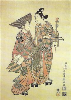 Le fond sonore est constitué essentiellement d'un luth à trois cordes joué ave un plectre. Instrument originaire de Chine, importé au XVIème siècle.