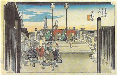 Le pont Nihon bashi à l'aube