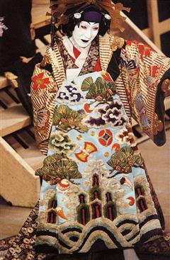 Les acteurs grimés, au maquillage agressif, portaient des costumes sompteux aux couleurs vives, importante source d'inspiration pour les graveurs.