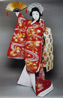 Les marionnettes de grandes tailles sont actionnées par trois manipulateurs dissimulés derrière des tuniques noires. Les poupées manipulées avec une extraordinaire précision expriment tous les registres des émotions évoquées par un chanteur accompagné par un choeur et le son de shamisen de l'orchestre. Le répertoire du bunraku repose sur des sujets classiques : épopées historiques, drames bourgeois, contes et légendes.