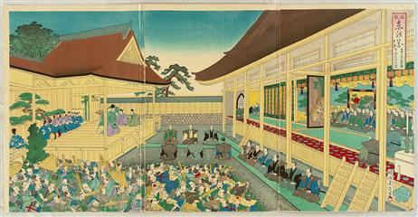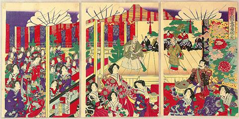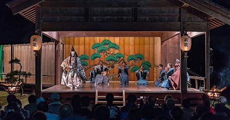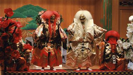 Les trois arts majeurs de la scène sont intimement liés aux légendes et croyances du Japon. Art dramatique, chants et danses s'entremêlent tout au long d'un spectacle.