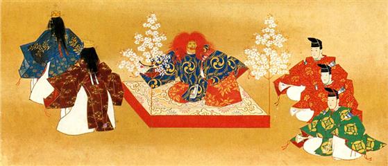 Le kagura, une danse religieuse ancienne éxécutée sur un fond musical et pratiquée par des prêtresses shintoïstes dans les sanctuaires à la période des cycles agraires, est probablement à l'origine du théatre classique.