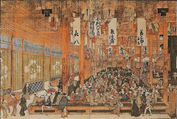 Dans la foule qui arpente les rues étroites de Edo, se côtoient paysans, samouraïs porteurs de sabres, moines mendiant, courtisanes, jeunes filles, bateleurs-ambulants, montreurs de singes, marchands de grillons, qui devisent d'étals en boutiques. Autant de sujets qui inspirent les peintres et graveurs d'ukiyo-e