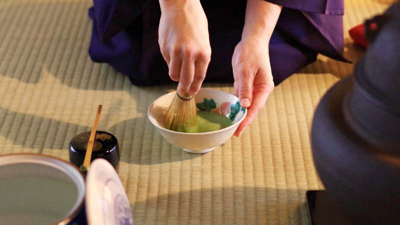 Le matcha est un thé vert dont les feuilles sont broyées en une fine poudre. De l'eau est mise à bouillir dans une bouilloire en alliage de fer "tetsubin", ce type de bouilloire utilisée pendant la période féodale se posait ou s'accrochait au dessus du foyer grâce à une anse. Un autre type de bouilloire la kama, une bouilloire ronde munie de deux oreilles, dont la seule fonction était de faire chauffer l'eau au cours de la cérémonie du thé. Les bouilloires ne sont pas des théières, leur seule fonction est de faire chauffer l'eau. Une fois chaude l'eau est versée sur le thé préalablement disposé au fond d'un bol (chawan). L'ensemble est mélangé par rotation du chasen, un petit fouet en bambou.