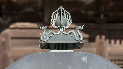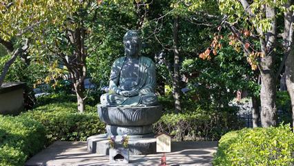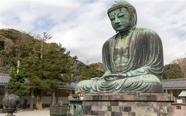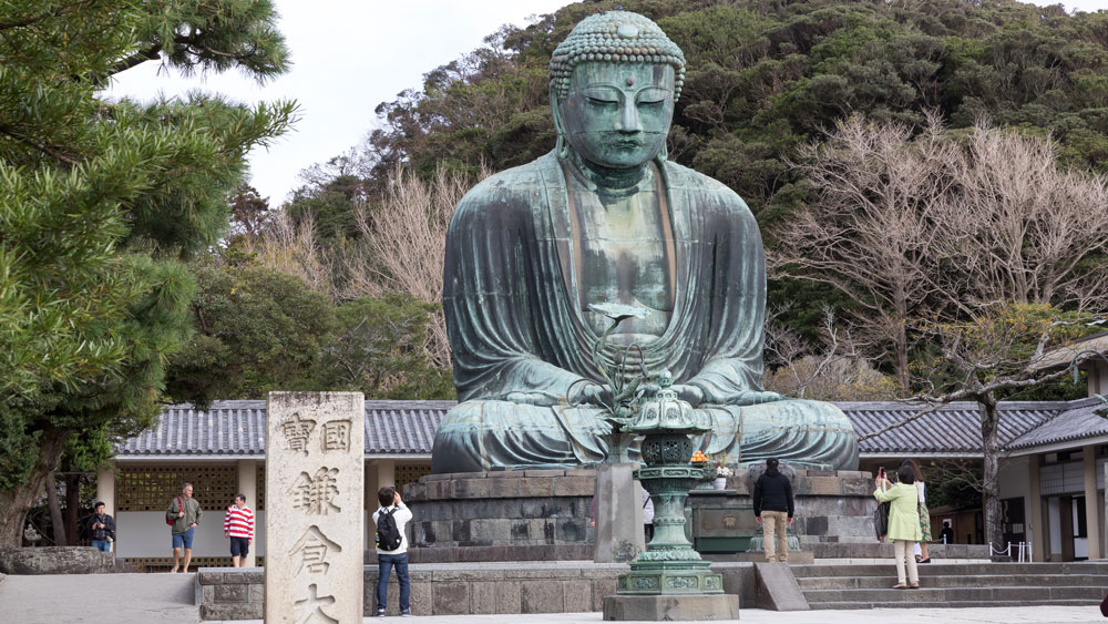 Notre visite débute au temple Kôtoku-in où une gigantesque statue en bronze de Bouddha trône en majesté. Une première statue en bois est érigée en 1247 sur ordre de l'épouse de Minamoto noYoritomo shogun de Kamakura mais un typhon abat cette statue cinq ans plus tard. Le shogun décide alors de faire élever une statue en bronze sur le modèle de la statue du bouddha Vairocana du Todai-ji de Nara.
