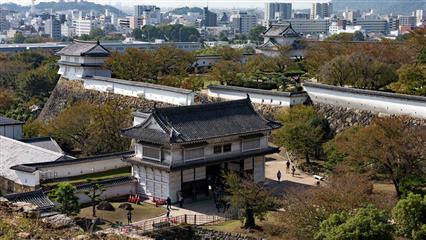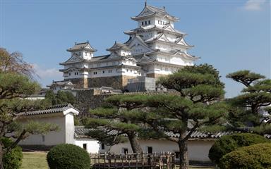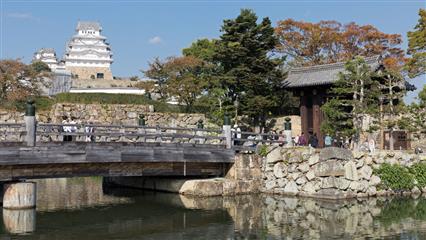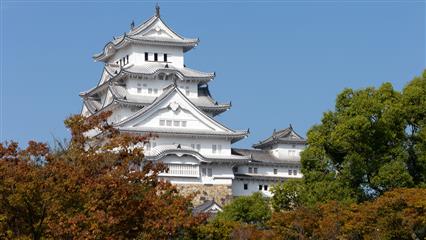 31 octobre : Himeji le premier château inscrit au patrimoine culturel mondial de l'UNESCO. Ce château puissant à la silhouette imposante et harmonieuse de couleur blanche domine la ville de Himeji de ses 91.9 mètres de hauteur, de ses 27 tours, de ses 21 portes, de ses 997 meurtrières (844 pour les armes à feu et 153 pour les arcs). La couleur blanche résulte de l'application d'un enduit obtenu à partir d'un mélange de chaux, de cendre de coquillage, de fibres de chanvre et d'algues. Cette couleur blanche vaut au château son surnom de "Héron blanc" (Shirasagi-jo). Construit sur une élévation au centre d'une plaine, cet édifice est construit autour d'un donjon principal (vu de l'extérieur ce donjon semble avoir 5 étages mais en fait l'intérieur révèle 7 étages dont un en sous-sol) entouré de trois tours-bastions englobées dans une enceinte de 3 km de long entourée de douves. Le château est défendu par un labyrinthe de portes, de mâchicoulis, de fossés, de passages dérobés, de remparts courbés en éventail. Les murailles de pierre sont recouvertes de toitures incurvées ondulantes habillées de plus de 350 000 tuiles.